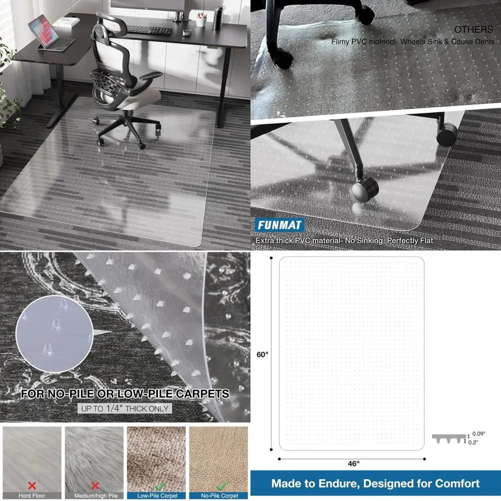 Carpet Desk Chair Mat — 46 x 60 inches, Non-Slip Vinyl with Studded Edges