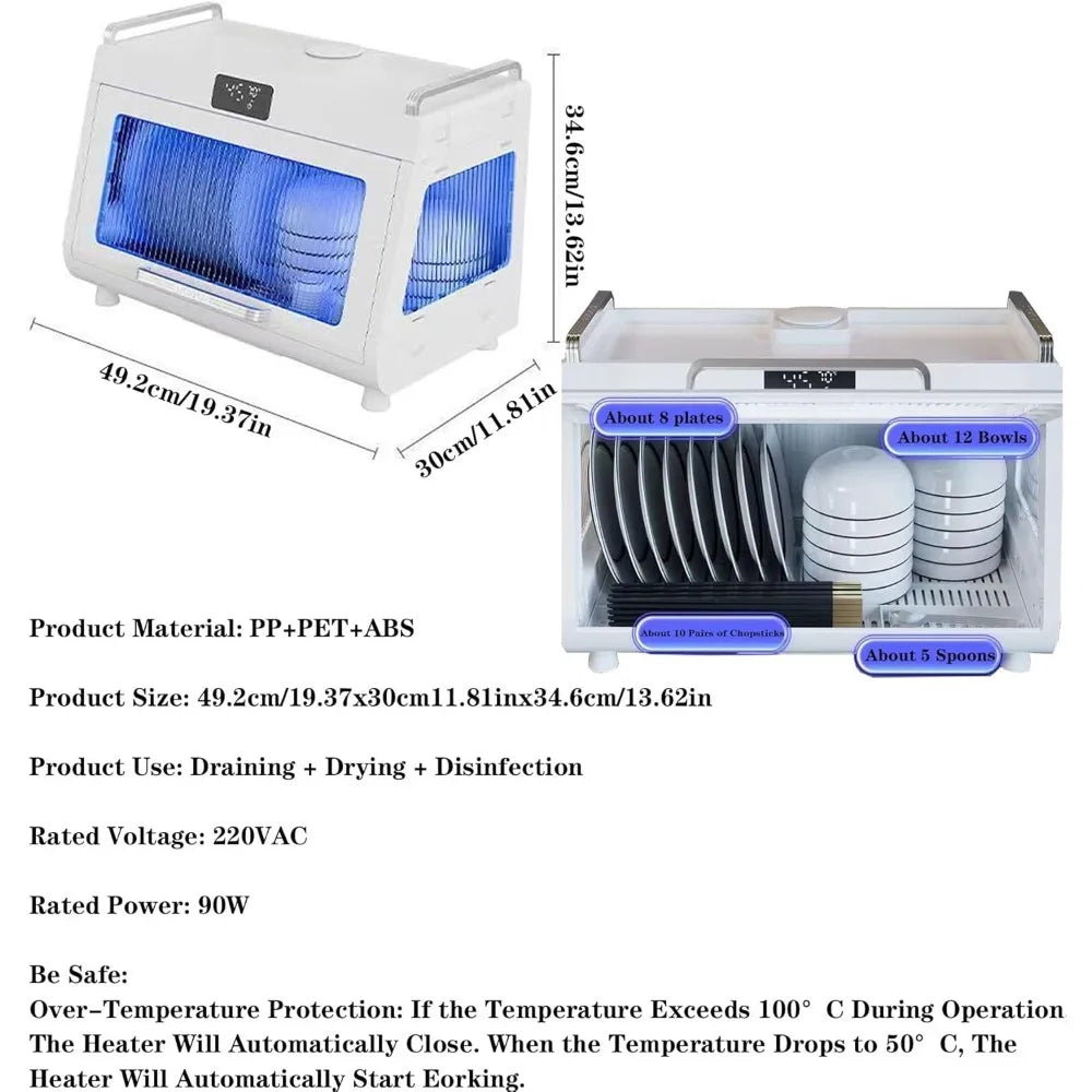 - Generous dimensions and capacity: Dimensional footprint 19.2 x 11.8 x 13.6 inches; fits standard counter space and holds various sizes of plates, bowls, chopsticks, and spoons.