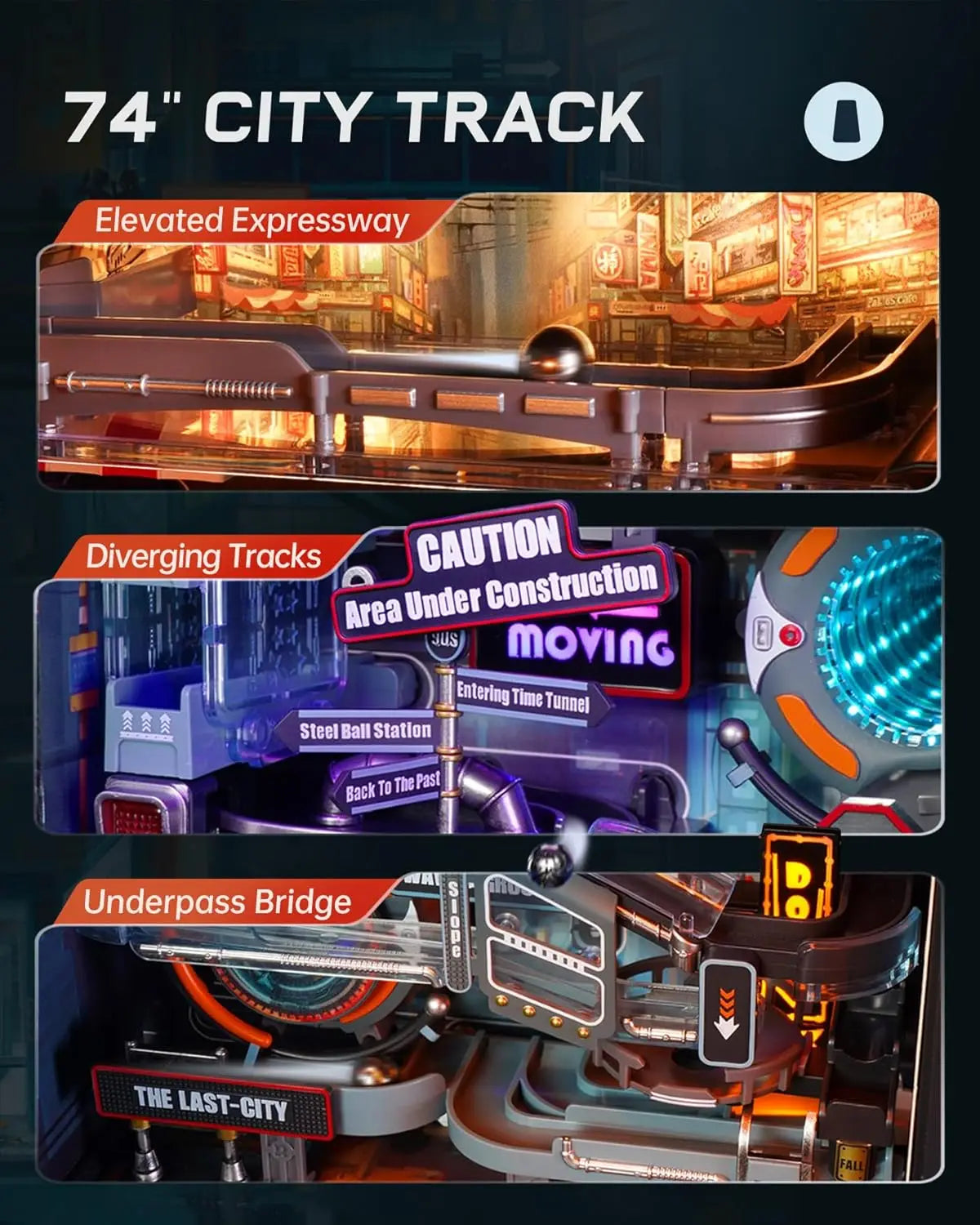 - Long, Impressive Track: An expansive 187 cm circuit where marbles traverse twists, turns, and city blocks in style.